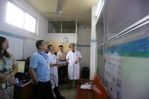 (副院长姜洪在急救指挥办公室观看实时救治情况的视像传输)