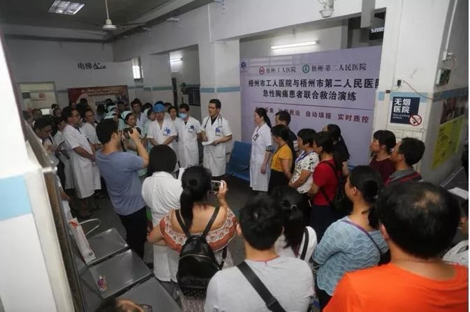 6月12日,我院与医联体医院市第二人民医院开展了一次医联体内急性胸痛患者联合救治演练。