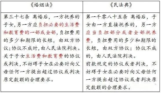 《民法典》第一千零八十五条将《婚姻法》将离婚后未直接抚养子女的一方应当负担“必要的生活费和教育费”,更改为“应当负担部分或者全部抚养费”,这就给将来法院裁判一方负担子女全部抚养费提供了法律依据,现实生活中,一方婚后回归家庭,基本上放弃了自已的职场生涯,离婚后再度回归职场难度可想而知,收入也将会出现断崖式下跌,若判决双方各半负担子女抚养费,极有可能导致子女的生活质量下降,该条规定有利于使父母离婚后的子女其生活得到更加充分的保障。