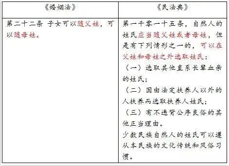 《民法典》第一千零一十五条规定使儿童的“姓氏权”不再局限于随父姓或随母姓,可以有更多的选择。