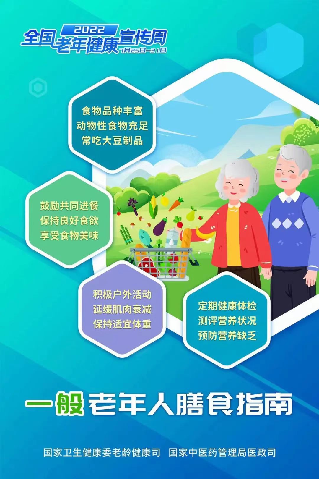 7月25日至7月31日是全国老年健康宣传周,今年的主题为“改善老年营养,促进老年健康”。对老年人来说,均衡营养、科学饮食有助于保持健康状态、延缓衰老、减少老年综合征。