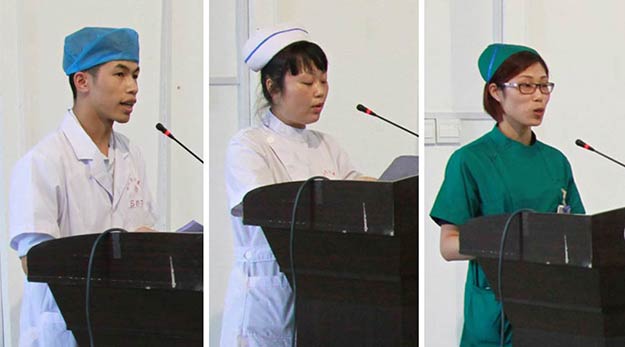 大会刚开始,徐微微副院长向全体护理工作者致以节日的问候,并希望她们做出新的更大的贡献。随后,在《唤醒护理》读书报告会决赛中取得优异成绩的重症医学科护士李旭青,为大家精彩分享了她的读书感悟。接着大会对肿瘤科等5个病房获2017年度院级优质护理服务先进病房,陈翠霞等56人获院级“优秀护士”称号进行了表彰。表彰后,手术室李恒、重症医学科肖银、肿瘤科张莹分别发言,向护士同仁们谈感悟及分享经验。
