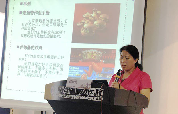 梧州市护理质控中心主任、工人医院副院长徐微微在会上表示,培养专科护理人才,建立一支具有较高专科护理水平及较高教学科研、管理能力的专科护士队伍,是加速本市本地区护理专业化进程,缩小与区内、国内护理水平差距的一项迫切任务。