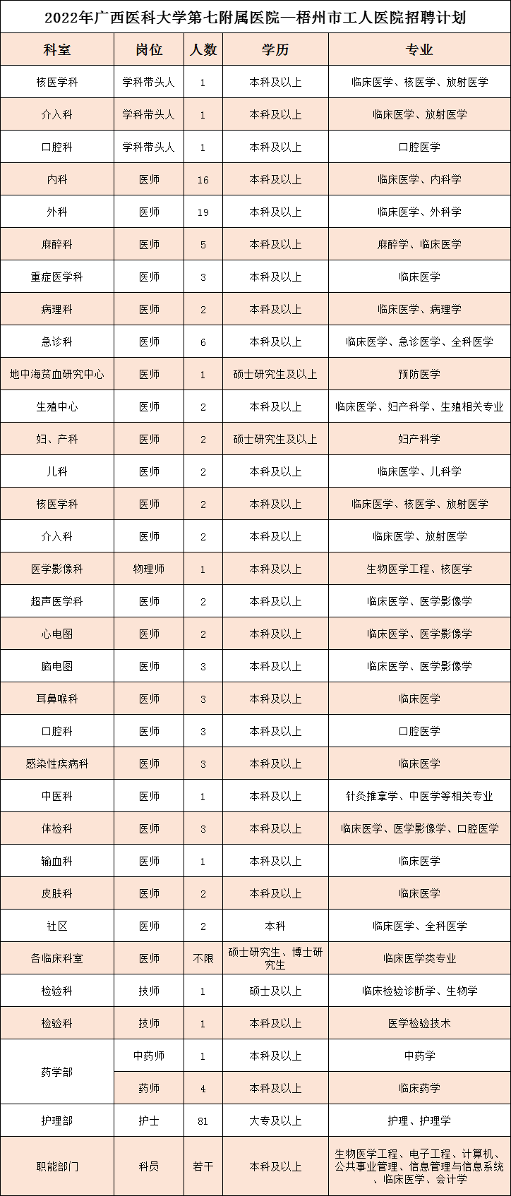 梧州市工人医院2022年招聘计划