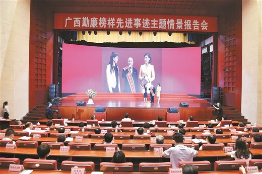 广西勤廉先进个人高兴华作报告(图片来源:广西纪检监察网)