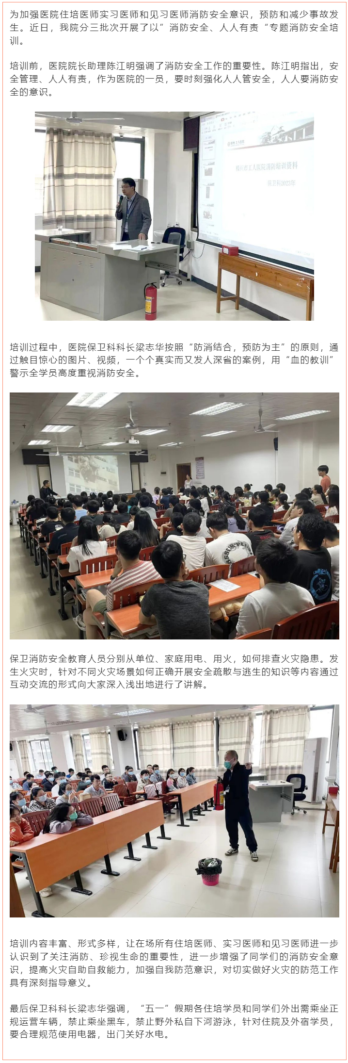 【消防安全 人人有责】梧州市工人医院开展住培、实习和见习医师专题消防安全培训