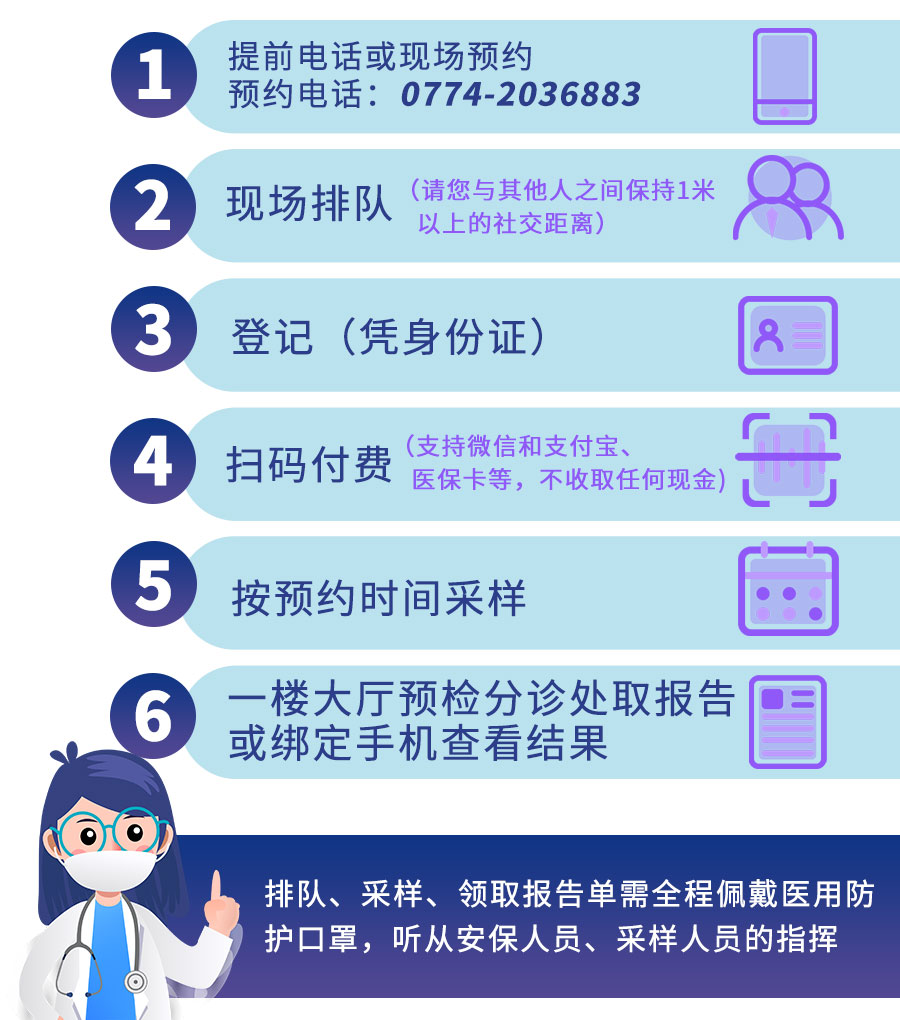 市民可在医院完成采样、检测、出检测报告全套流程,大大缩短检测时间,同时扩大检测覆盖面。因复工、复学、外地就诊等情况需要出具相应检测报告的市民,只需要在发热门诊告知接诊医务人员,由医生开具医嘱,即可进行检测。