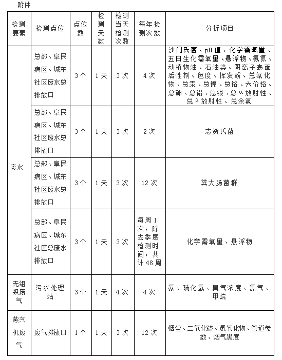 根据梧州市工人医院环保检测需要,拟对梧州市工人医院总部、阜民病区、城东社区的污水和蒸汽机的废气年度检测服务采用单一来源方式采购,有关事项公示如下: