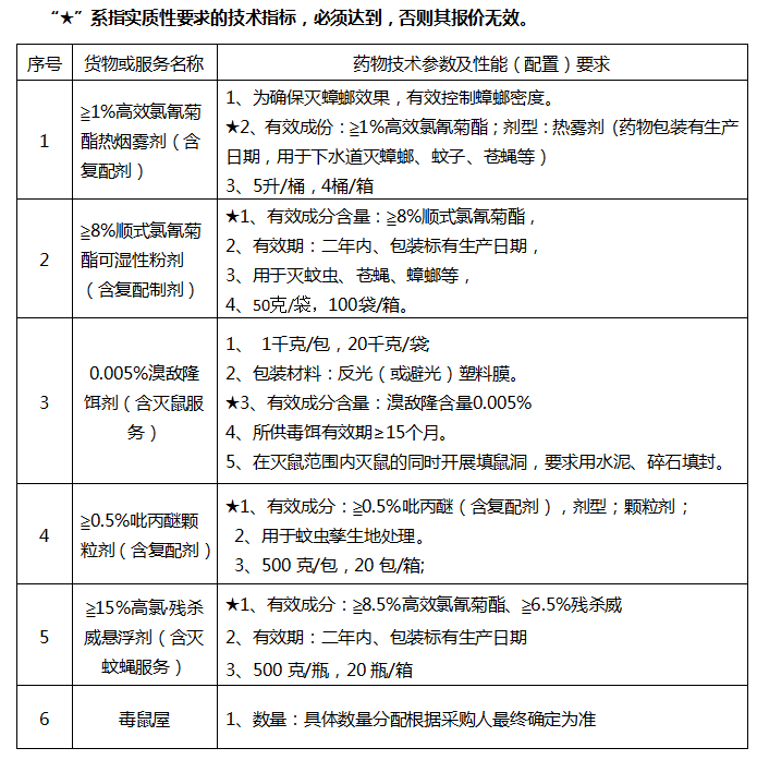 (2) 以上的药物必须附上有效“三证”:农药登记证、农药生产批准证书、技术监督部门备案的企业标准和生产企业的营业执照。(报价文件中提供复印件必须加盖生产厂家公章,否则报价无效;签订合同时需提供有效“三证”:农药登记证、农药生产批准证书、技术监督部门备案的企业标准的复印件并加盖生产厂家公章,或则不予签订合同)