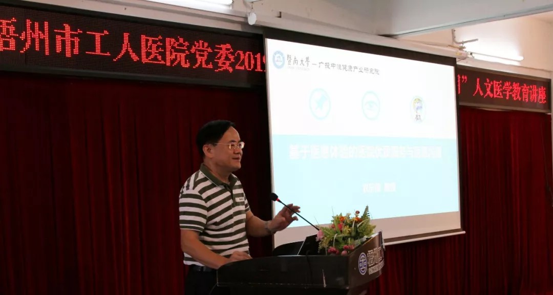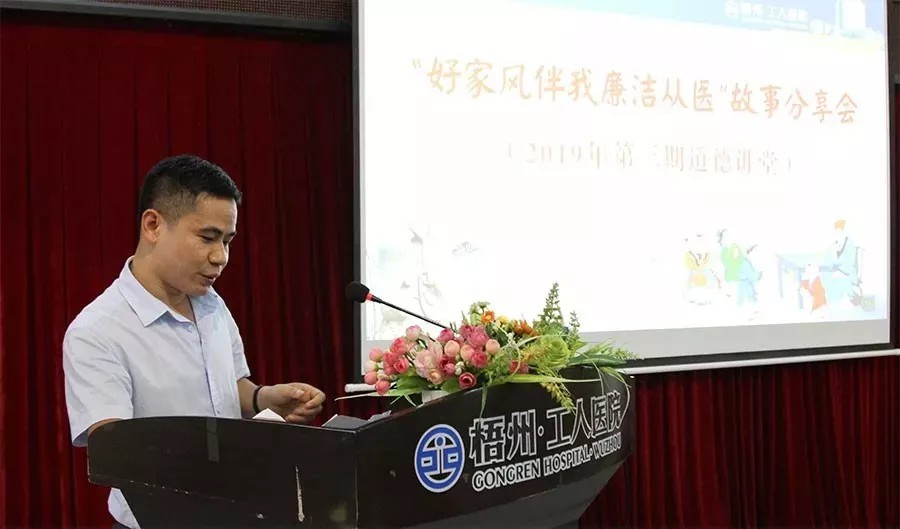 8月28日下午,梧州市工人医院在阜民分部十楼会议室召开2019年“加强医德医风建设宣传月·人文医学教育讲座”。本次讲座特邀中国企业文化研究会特聘研究员、暨南大学广投中恒健康产业研究院特聘教授、中国研究院医院学会医患体验管理与评价专业委员会委员农乐根授课指导,医院中层干部和医护人员共150人前来听讲。