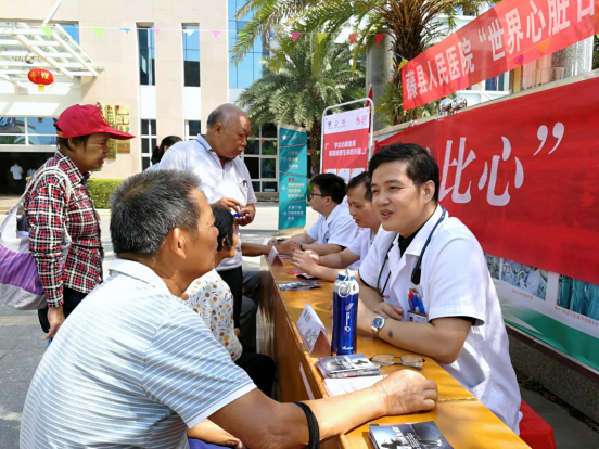 今年 9 月 29 日是第二十个世界心脏日,今年的主题是“将心比心——人人都是自己的心脏英雄"。在世界心脏日到来之际,我院携手藤县人民医院、梧州民族医院开展义诊咨询活动、发放宣传手册、播放预防心梗宣传短片等多种形式,为广大人民群众宣传有关心脏健康的知识,让公众认识到生命需要健康的心脏。