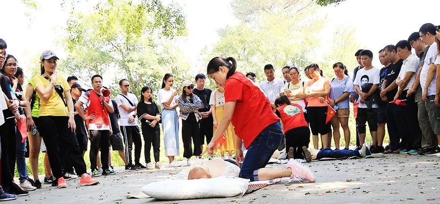 (国庆节前夕,急诊科到白云山向市建筑设计院及登山群众开展基本急救技能培训)