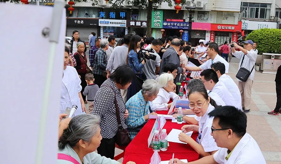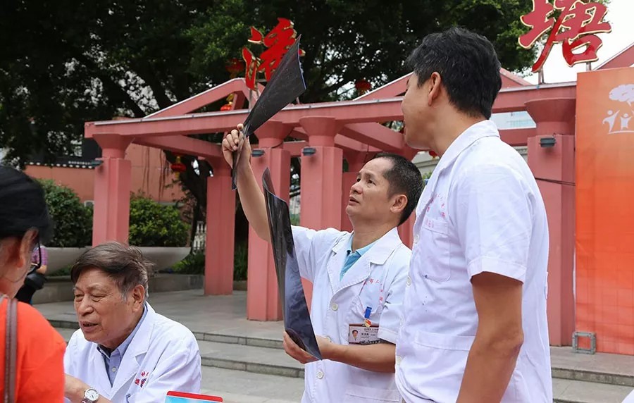 10月19日上午,梧州市工人医院和广东三九脑科医院在潘塘公园进行了大型联合义诊活动。来自两家医院的十多位著名专家来到广场上,耐心为群众进行疾病诊疗,众多慕名而来的群众纷纷排队问诊。本次义诊活动为群众带来了实实在在的惠利。(刘晓锋 )