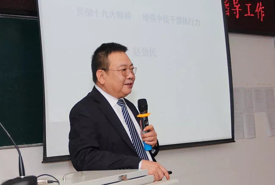 “时隔五十多年,我又回到了出生的地方”。赵劲民校长用一句轻松的话拉近了大家距离,开始了精彩的授课。赵校长以“贯彻十九大精神,增强中层干部执行力”为主题,从执行力建设的重要性、含义和类型阐述了“制度的生命力在于执行力”的论述,表明中层干部的角色定位和执行力的重要性,并对中层干部执行力弱的表现及原因进行了深入分析,同时提出增强中层干部执行力的措施及方法。
