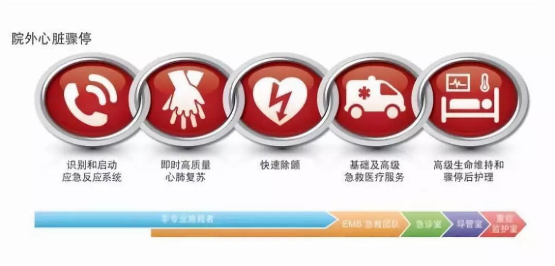 基础疾病、长期熬夜、缺乏体育锻炼、过劳、饮食结构不合理等不良生活方式都是当代人猝死的高危因素。对普通民众而言,往往看到的是患者突然倒地、不省人事。当心跳呼吸骤停后的4分钟,被称为黄金抢救时间。此时有效的胸外心脏按压及正确的AED(自动体外除颤器)的配合使用能极大提高抢救成功率。