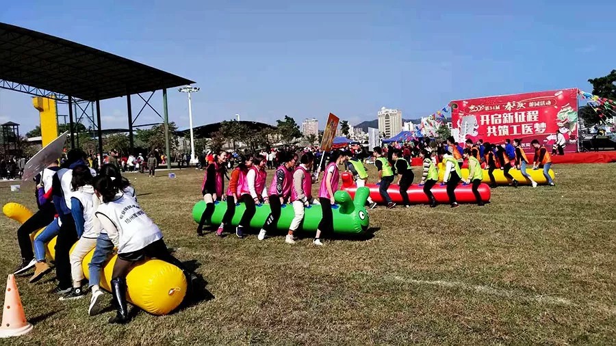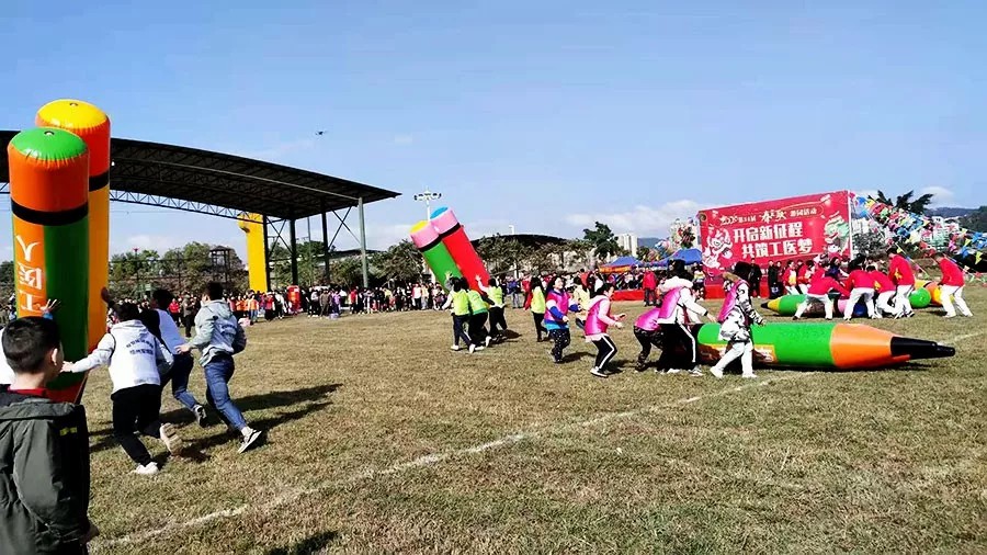 快闪合唱《我和我的祖国》弘扬以爱国主义精神,在运转乾坤项目的道具上,印有“工人医院、团结协作、发奋图强、力争上游、共筑辉煌”的标语,彰显团结协作、积极向上的精神面貌;在大力士笔项目道具上,印有“工医人、撸起袖子、加油干、铸造辉煌、再创蓝图”标语,营造力争上游的氛围。整场活动围绕社会主义核心价值观、新时代梧州精神、医院文化等进行了充分布置,营造出浓厚的文化氛围,让职工及家属不仅玩得开心,还感受到了积极的文化熏陶。