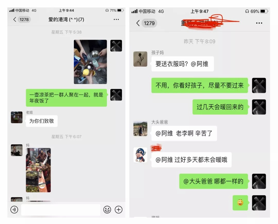 (黎德郡医生与家人聊天截图以及隔离区工作照)