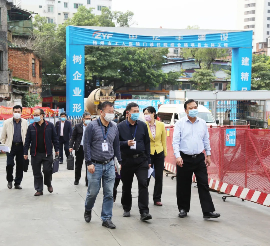 自市委3月20日召开全市作风兴市工作动员大会以来,全市掀起产业兴市、作风兴市热潮。3月26日上午,梧州市人大常委会副主任叶剑强率“三年三工程”服务队至市工人医院门诊住院综合楼建设项目现场开展“三年三工程”联系服务活动。医院党委书记黄国武、院长宁金沛等院领导陪同。