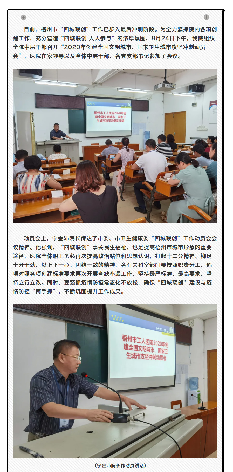 【提振精神冲刺 决战创城攻坚】梧州市工人医院召开2020年创建全国文明城市、国家卫生城市攻坚冲刺动员会
