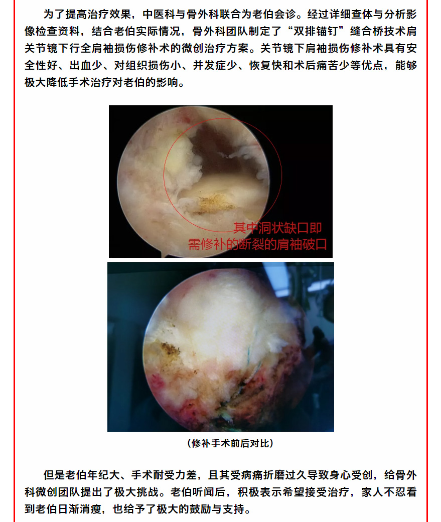 近日,我院骨外科微创团队完成了院内首例肩关节镜下“双排锚钉”缝合桥技术并取得良好效果。