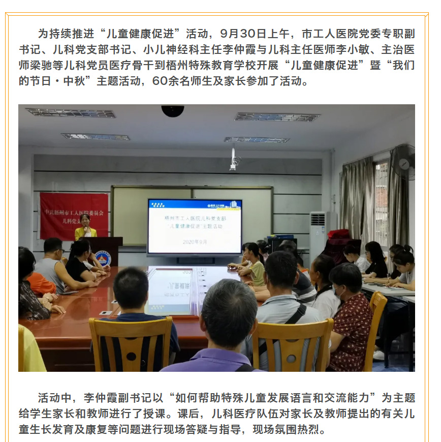 我院儿科党支部到梧州特殊教育学校开展“儿童健康促进”暨“我们的节日·中秋”主题活动