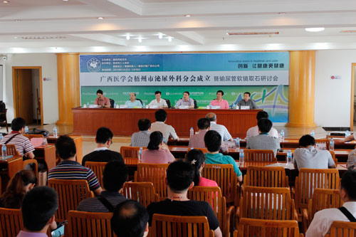 梧州市医学会泌尿外科分会的成立,得到了广西泌尿外科协会、广西医科大学各附属医院泌尿外科的大力支持。学术会上,宁波市人民医院程跃教授、广西医科大一附院黄伟华教授、广西区医院梁建波教授对梧州市医学会泌尿外科分会的成立表示衷心的祝贺,并分别做了学术演讲,探讨国内泌尿外科最新技术。此外,他们还分别做了手术演示,通过通讯技术将手术演示全过程直播到会议现场,与在场与会人员进行交流,大大地增强了学术氛与交流深度。专家教授们的精彩学术演讲与现场手术演示,很好地加深了泌尿外科微创治疗新技术的交流与传播,对与会人员进行了一次很好的技术培训,对提高他们的业务能力有很大的帮助,对提高梧州市泌尿外科医学技术有积极意义。