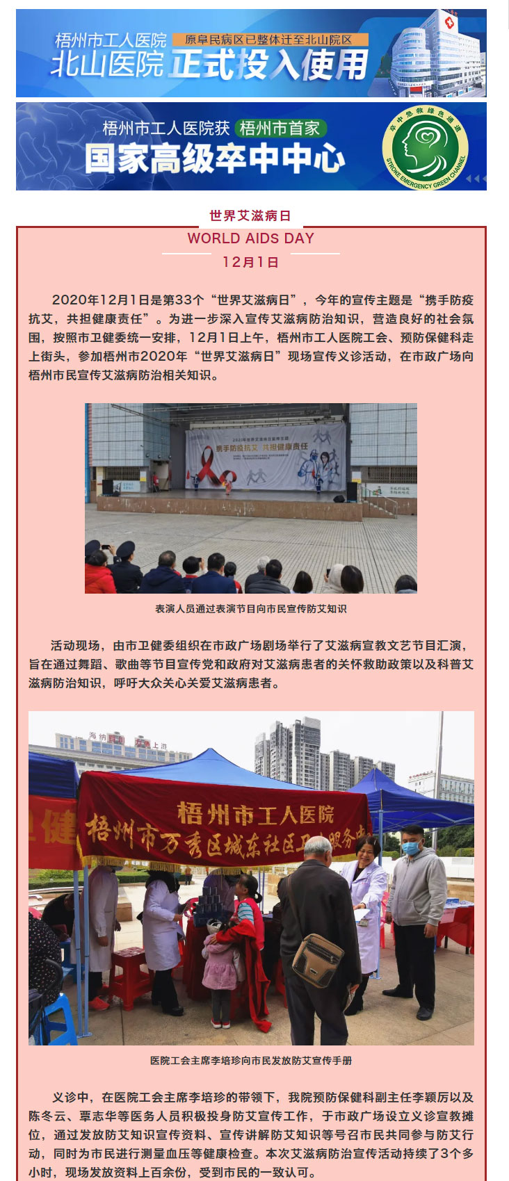 【为爱宣传 让“艾”远离】梧州市工人医院开展第33个“世界艾滋病日”宣传义诊活动