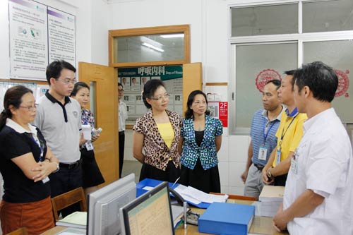 8月29日下午,钟碧珍副市长由市卫生局党委书记谢英、副局长陈瑞文陪同,再次到我院围绕等级医院评审工作进行专题调研。黄志红院长代表医院作“三甲”冲刺阶段工作汇报。