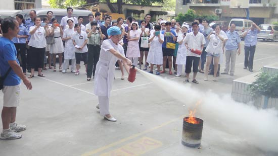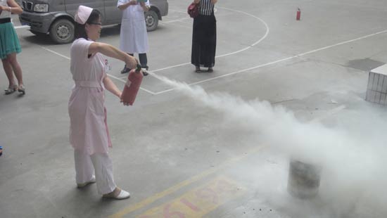 培训中,消防宣传人员从贴近实际、实用性强的消防常识入手,向医院工作人员讲授了预防火灾的基本常识以及灭火器的操作、使用方法和逃生时应注意的事项等。重点向医院职工讲解了正确报警程序、初起火灾扑救方法、逃生自救及组织人员疏散时注意事项、灭火器使用方法等消防知识。并进行了灭火演练,使职工更加直观的了解自救逃生技巧及灭火器的使用。