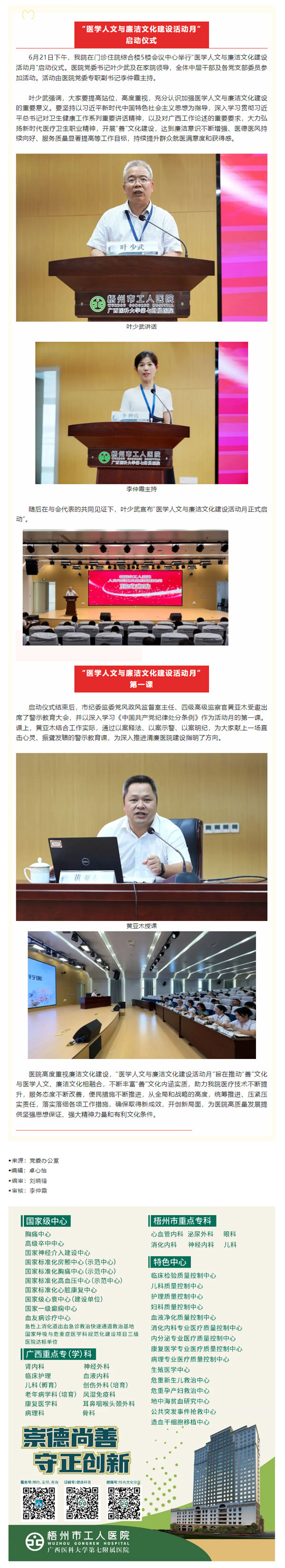 医学人文与廉洁文化建设活动月(一)│梧州市工人医院举行“医学人文与廉洁文化建设活动月”启动仪式