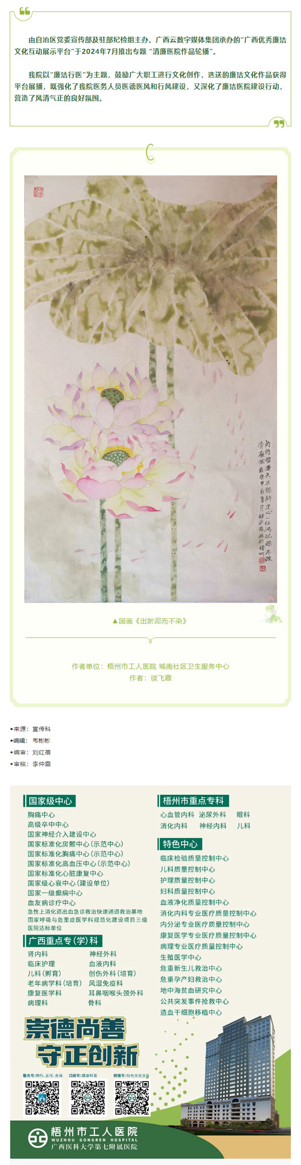 医学人文与廉洁文化建设活动月(八)︱市工人医院廉洁文化作品之二_国画《留得清气在人间》