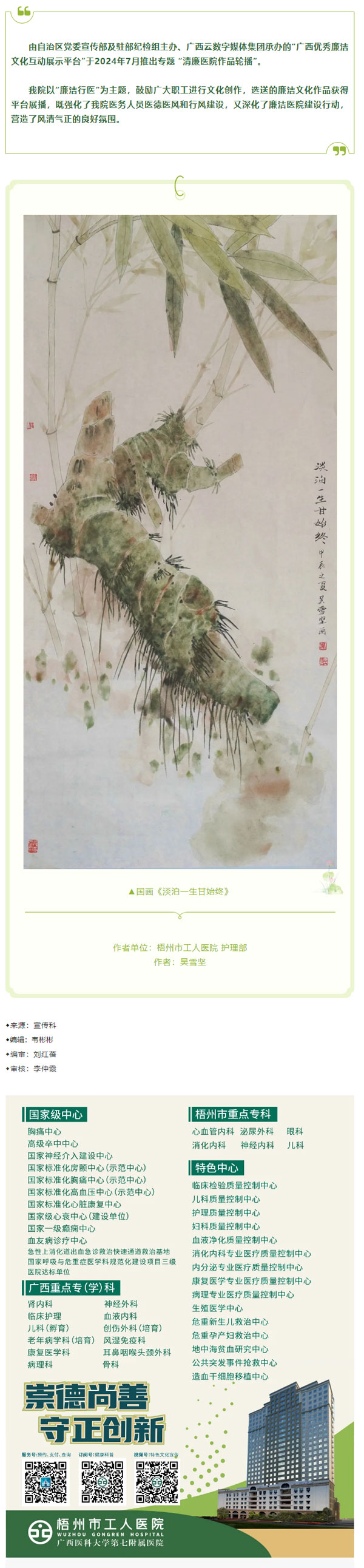 医学人文与廉洁文化建设活动月(九)︱市工人医院廉洁文化作品之三_国画《淡泊一生甘始终》