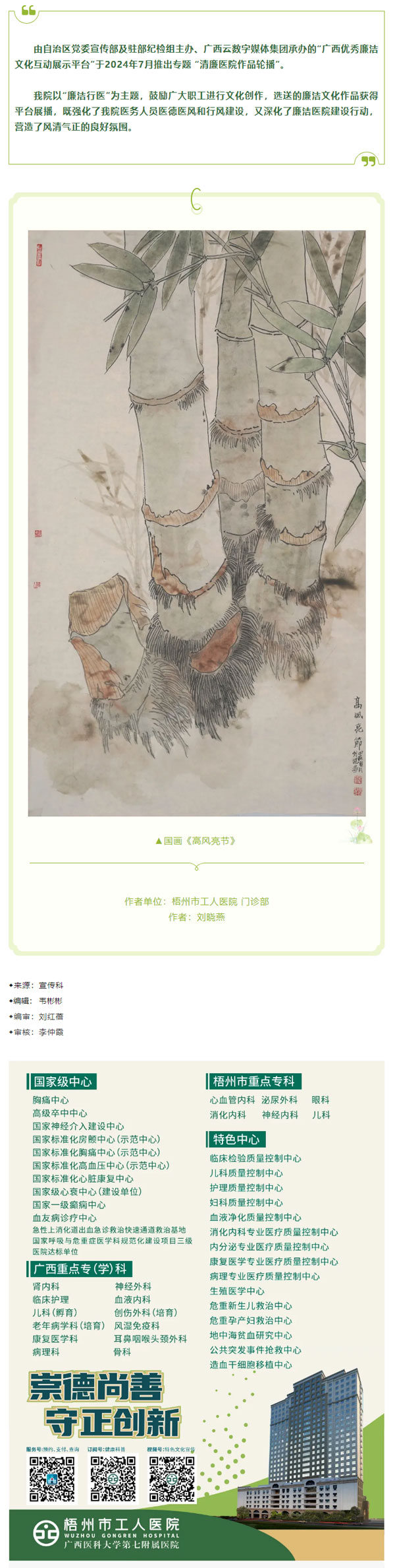 医学人文与廉洁文化建设活动月(十)︱市工人医院廉洁文化作品之四_国画《高风亮节》