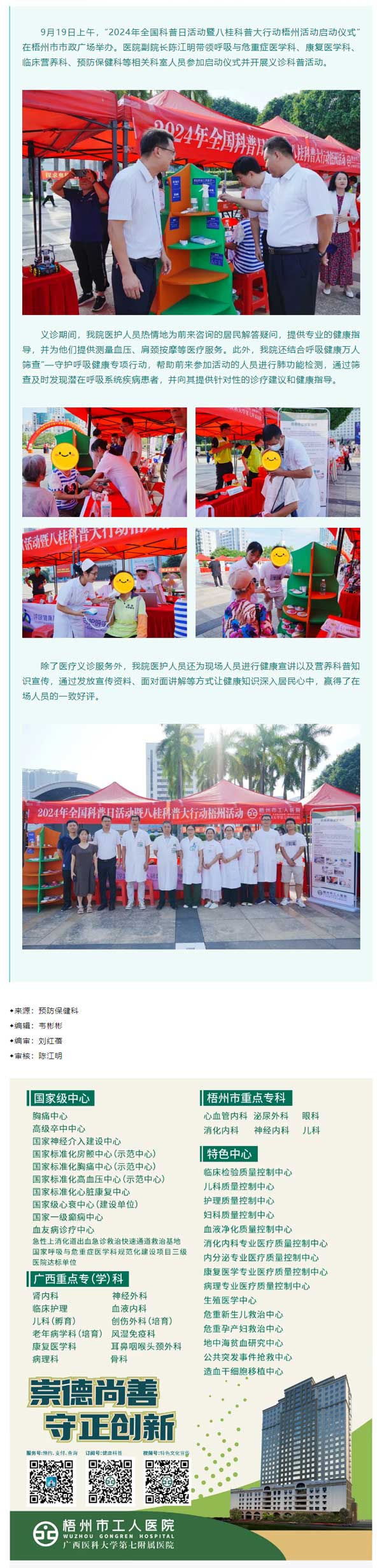 我院参加2024年全国科普日活动暨八桂科普大行动梧州活动启动仪式