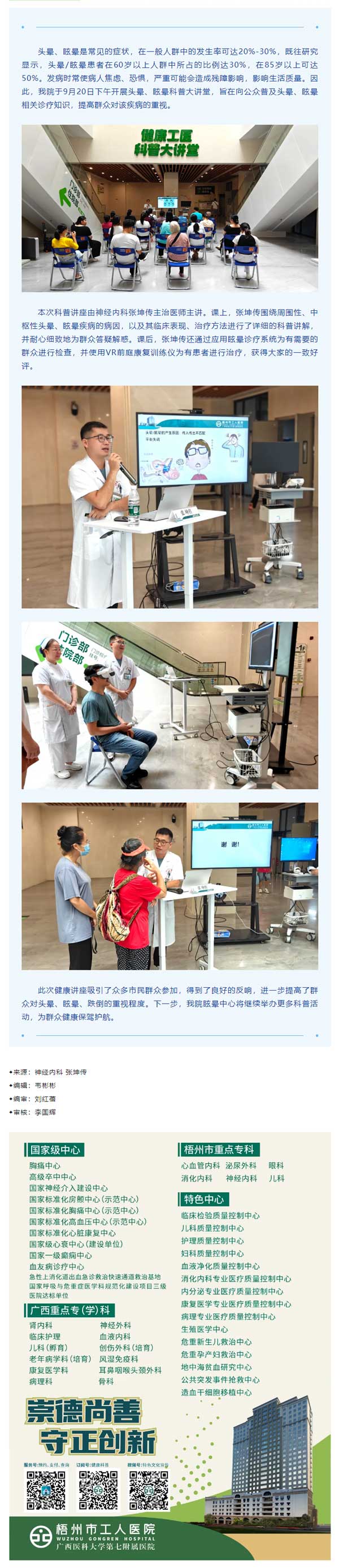 健康工医科普大讲堂:关注头晕疾病,守护跌倒安全
