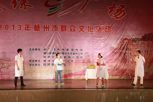 9月13日晚,梧州卫生系统璀璨广场群众文化活动在市政广场小舞台举行。市卫生系统单位共13个节目参加演出。节目以小品、话剧、歌舞剧、相声...