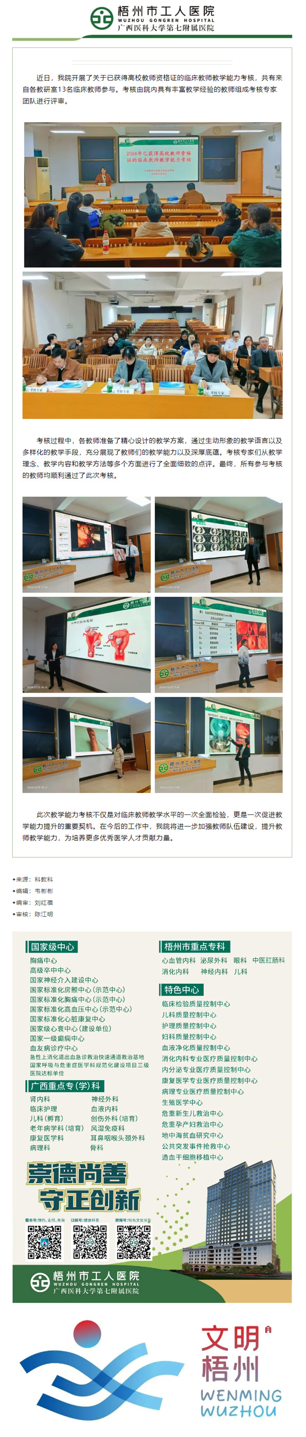 梧州市工人医院梧州市工人医院开展临床教师教学能力考核