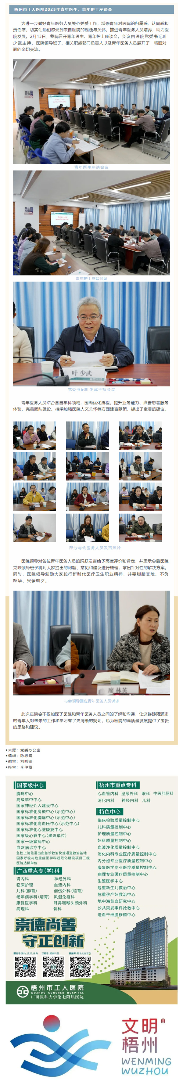 凝“青”聚力 共话发展|梧州市工人医院召开2025年青年医生、护士座谈会