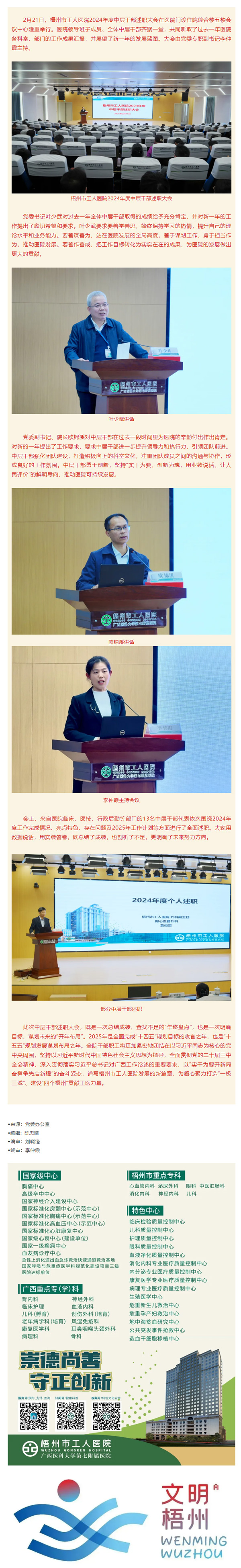 凝心聚力谋发展-砥砺奋进谱新篇——梧州市工人医院2024年度中层干部述职大会圆满落幕