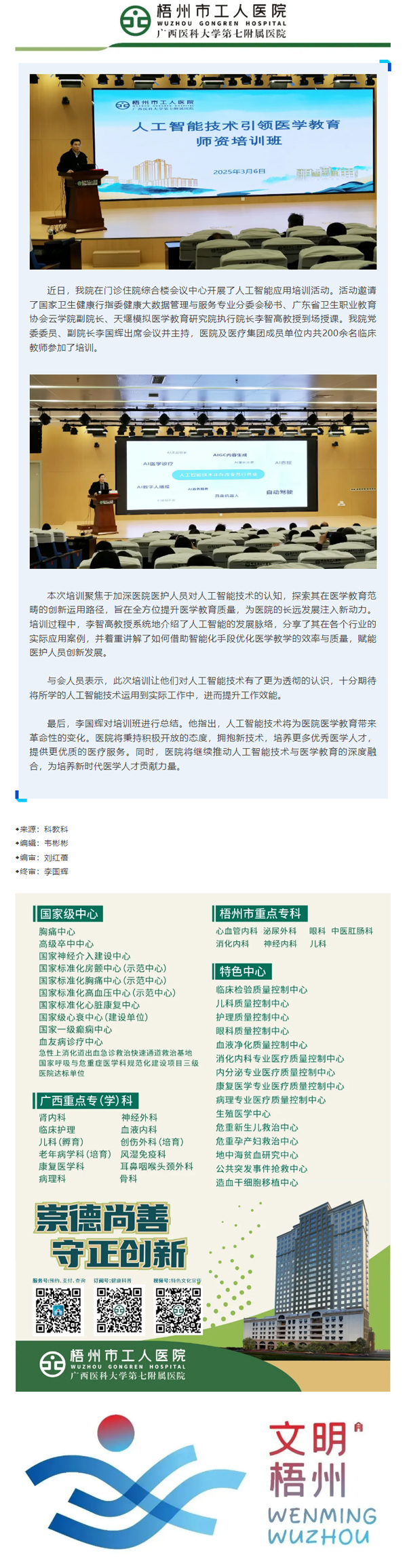 梧州市工人医院开展人工智能技术引领医学教育师资培训班
