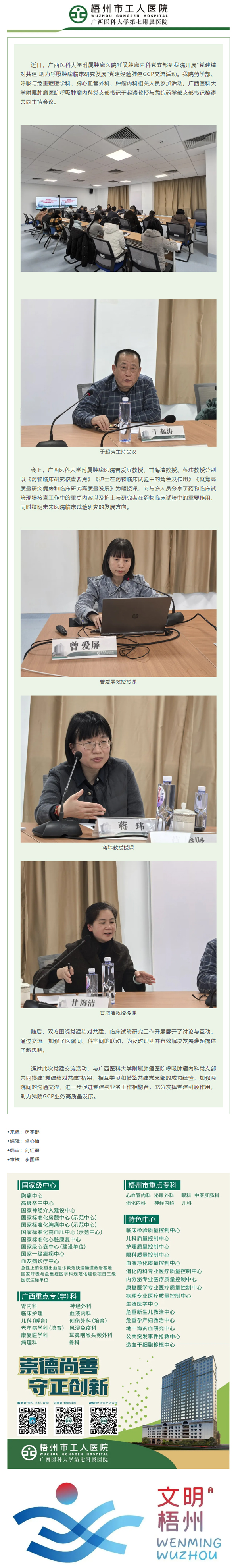 我院与广西医科大学附属肿瘤医院呼吸肿瘤内科党支部开展党建结对共建交流活动