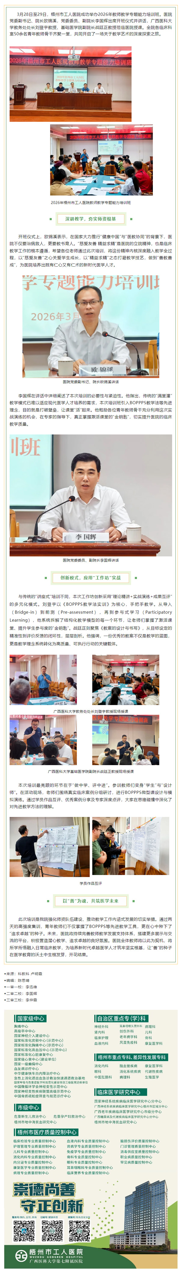 梧州市工人医院2026年教师教学专题能力培训班圆满收官