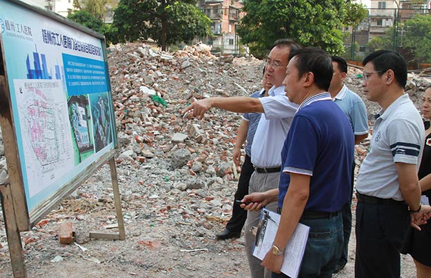 8月26日下午,梧州市市长朱学庆率队到我院实地查看,了解我院门诊住院综合楼项目的推进情况。朱学庆走到建设工地,听取了医院院长黄志红、市卫计委谢英主任等的简明汇报,对遇到的问题进行了讨论。