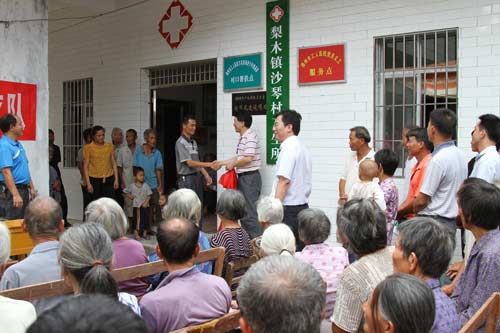 为了更好地开展卫生服务,解决群众看病难的问题,市工人医院成立了一支由15名医疗专家组成的巡回义诊医疗队伍,为岑溪市5个乡镇28个村的村卫生所提供技术帮扶,同时开展巡回义诊活动,为村民免费看病、讲授健康知识,并向部分贫困村民赠送慰问品,活动深受当地老百姓欢迎。图为5月30日市工人医院与岑溪市黎木镇沙琴村卫生所结成对口帮扶的挂牌仪式。