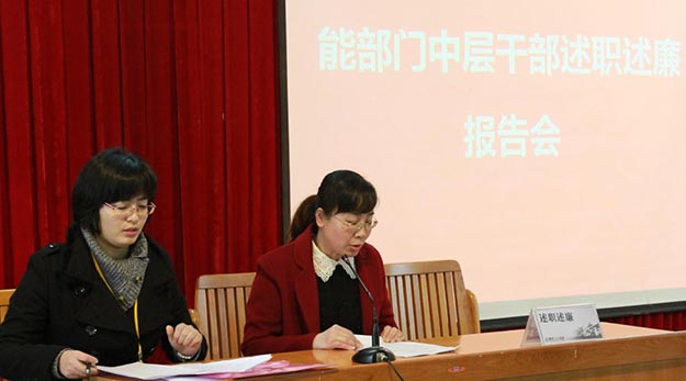 2月17日上午,工人医院19名职能部门中层干部集中会场,轮流对上年度工作情况进行述廉述职。医院领导班子、医疗科室负责人进行现场考评,院长点评。