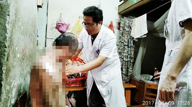 “他被送来的时候伤势非常重,属于特重级烧伤。”黎大叔的主治医师华若岳说。为了给他制定科学的治疗方案,整个科室的医生都参与了讨论,并制定了详细的救治方案,同时对其进行了建立静脉通道补液、抗休克、抗感染、创面处理等一系列治疗措施。由于有呼吸道吸入性损伤,而黎大叔家属不同意气管切开或气管插管,为保持呼吸道通畅,以防水肿窒息危及生命,普外科二区的医生护士严守床边,动态观察病情。期间,由于肿胀明显,黎大叔曾一度出现气促等情况,经处理后转危为安。