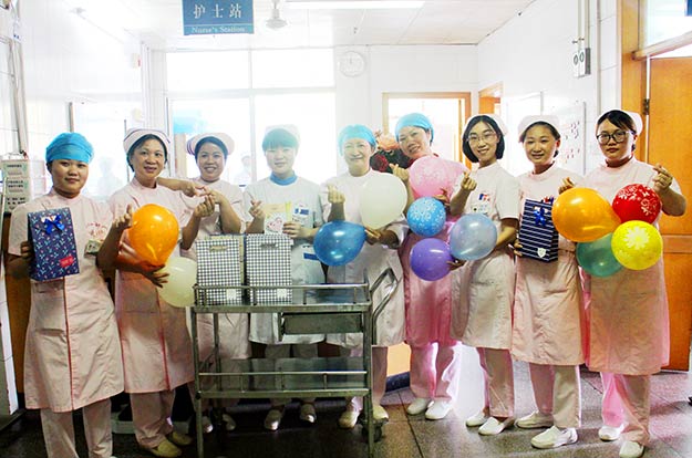 活动中,儿科的护士们将准备好的公仔、气球、糖果、画笔等礼物,带到病房里逐一向每一个住院的儿童赠送,并祝他们儿童节快乐。很多小朋友看到护士们变戏法一样拿出玩具的时候,都惊喜得叫出声来,小小的病房里充满了欢声笑语,也让家长们倍感温馨。