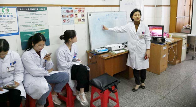 在活动中,在眼科主任陆华文的主持下,魏艳飞医生先后扮演了病人和医生的角色,与其他同事一起重演了当时病人在就诊时遇到困难的场景。