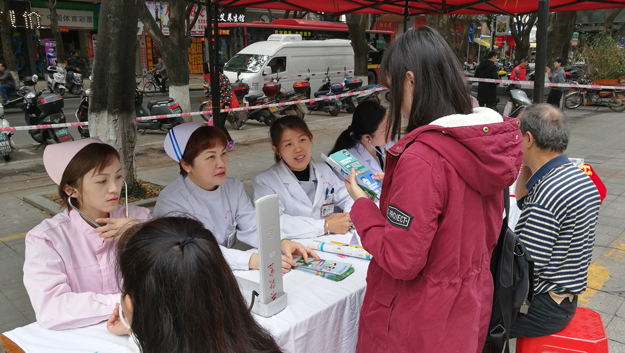 4月2日上午,我院联合梧州市第二人民医院及大学社区在旺城广场开展以“爱在心 口难开”为主题的世界自闭症关注日大型义诊活动。活动现场由我院儿科学博士李仲霞和第二人民医院精神科罗金流主任带队,免费为现场群众提供自闭症病因解读、自闭症认识及康复训练方法介绍、血压测量等服务。