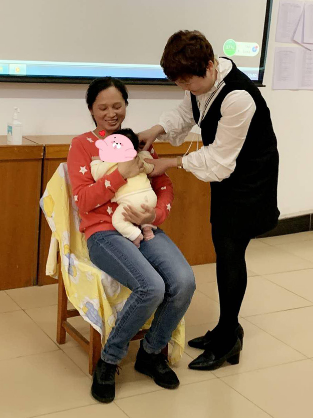 (卢露护士长现场指导学员进行袋鼠式护理操作体验)